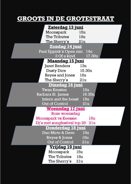 Groots in de Grotestraat. Inmiddels een begrip in Nijmegen. Muzikanten staan op 4 losse blokken…